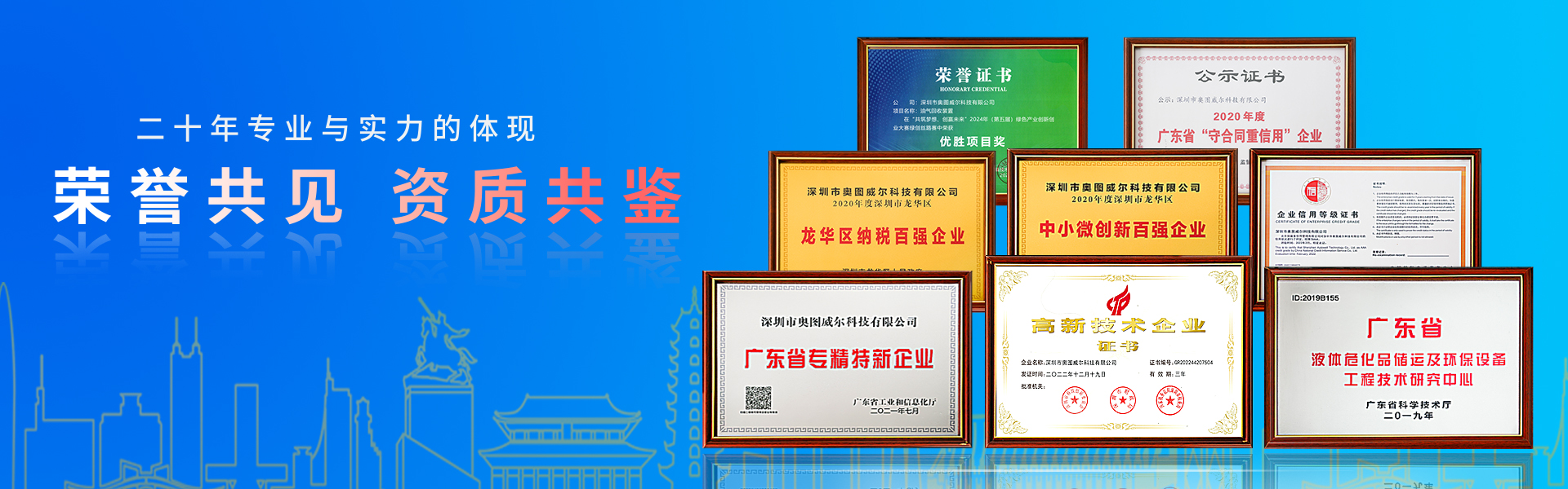 深圳市奧圖威爾科技有限公司創(chuàng)立于2003年。公司總部座落于全球極具經(jīng)濟(jì)與創(chuàng)新活力的粵港澳大灣區(qū)核心城市—深圳,是國(guó)家級(jí)高新技術(shù)企業(yè)、廣東省專(zhuān)精特新企業(yè)、龍華區(qū)中小企業(yè)納稅百?gòu)?qiáng)企業(yè)、龍華區(qū)中小企業(yè)創(chuàng)新百?gòu)?qiáng)企業(yè),并被認(rèn)定為廣東省?;分悄軆?chǔ)運(yùn)及環(huán)保設(shè)備技術(shù)研究中心、深圳市兩化融合貫標(biāo)企業(yè)。